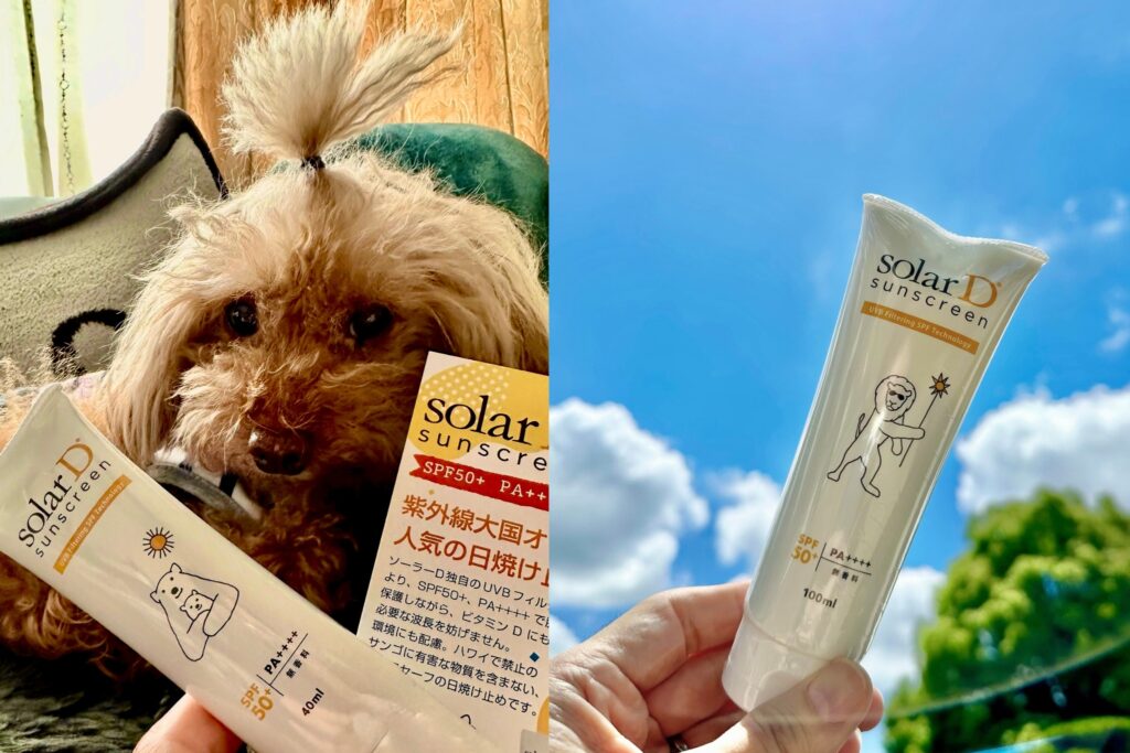 そして、日焼け止めは「ソーラーD」です! ビタミンD合成を妨げにくい日焼け止め。これは徹底しています。